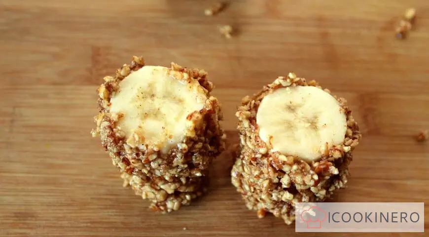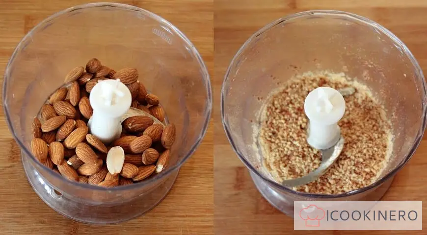 Mit zerkleinerten Datteln in einem Mörser mischen, bis eine homogene Konsistenz zu einer klebrigen Masse entsteht.