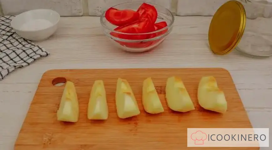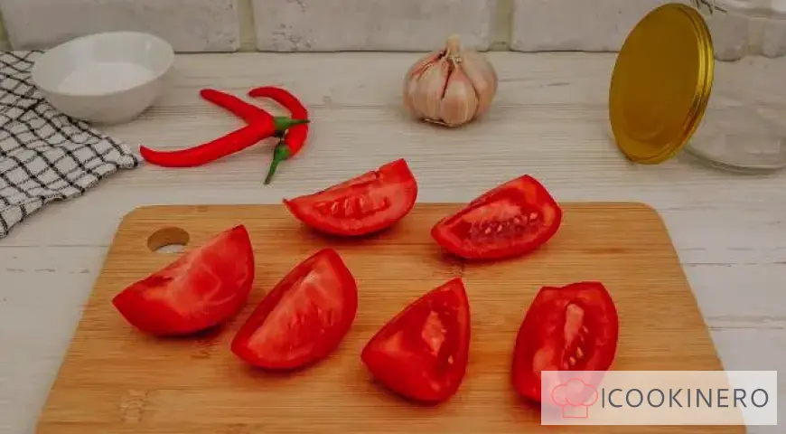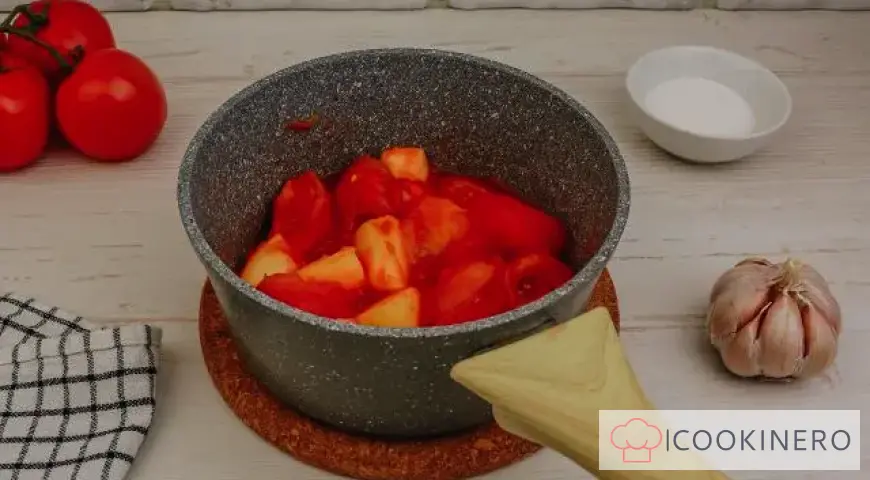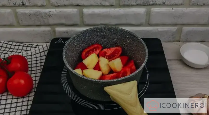 Place the apples, chili peppers and tomatoes in a saucepan. Place the saucepan on the fire.