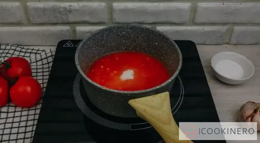 Add salt, ground black pepper, sugar and garlic to the adjika.