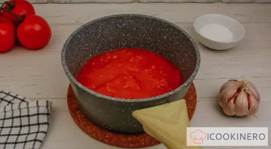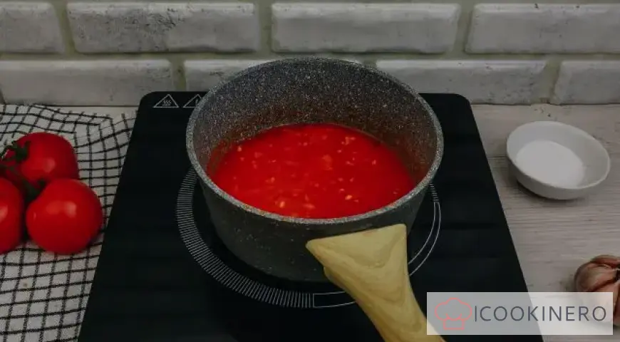 Cook the adjika for 40 minutes until the tomatoes and apples are completely soft.