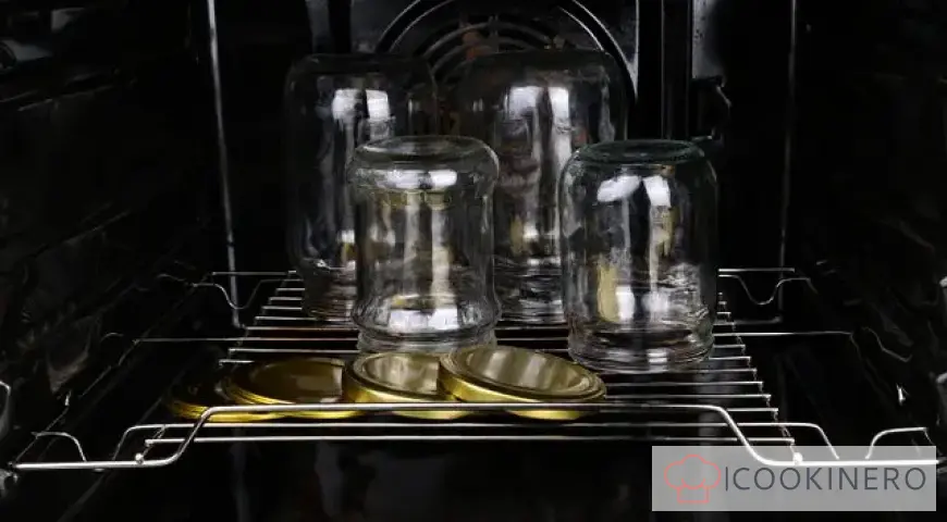 Place the jars and lids in the oven, turn the oven on to preheat to 120 ⁰C, then turn it off after 13–15 minutes.
