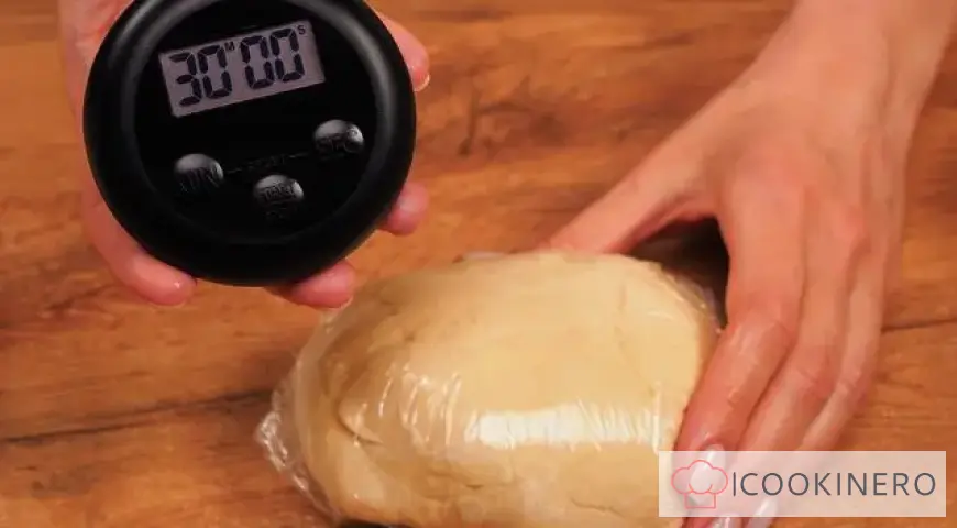 Place the dough on the table, having previously sprinkled a little flour on the surface or greased the table with vegetable oil. Spread the dough on the table so that a flat rectangular flat cake is formed and stretch it from the center to the edges to form a thin layer.