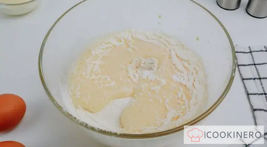 Add flour to the bowl and mix the ingredients thoroughly.