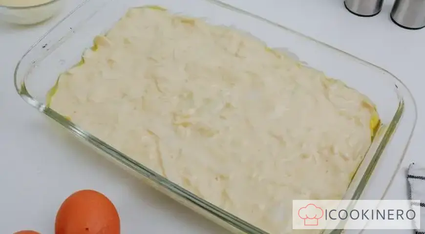 Add mayonnaise and sour cream to the bowl and mix the ingredients thoroughly. The dough is ready!