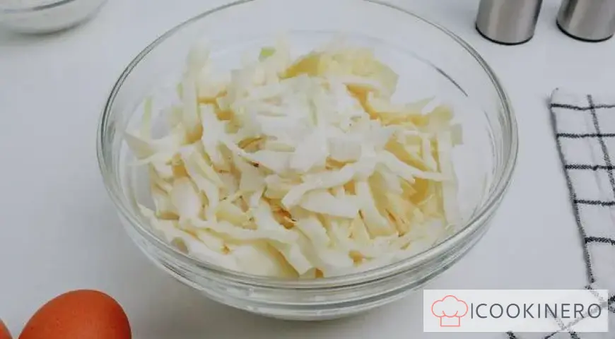Shred the cabbage, add salt and crush the cabbage with your hands.