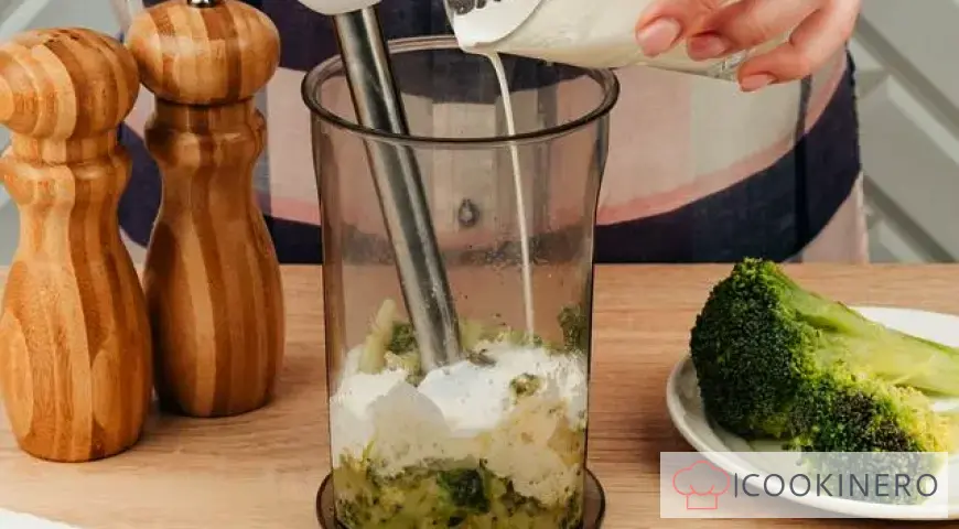 Place broccoli in a blender, add cream, salt and pepper to taste.