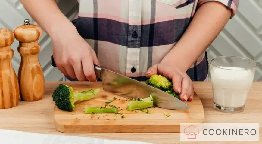 Divide the broccoli into florets and cut off the hard part of the stem.