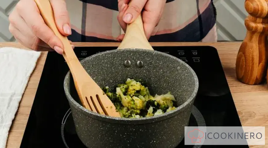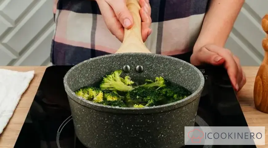 Pour water into a saucepan, add broccoli and place over medium heat.