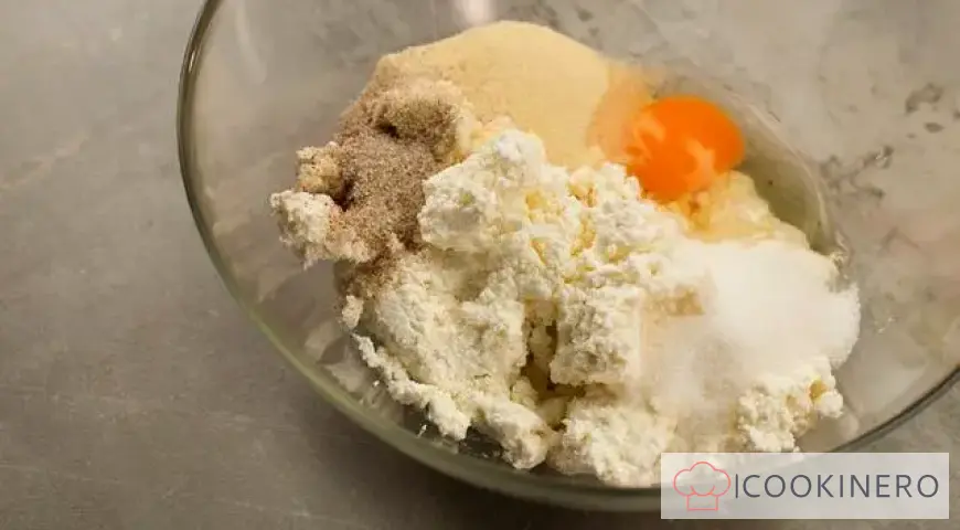 Combine the cottage cheese with the egg, semolina, sugar and vanilla sugar. Mix everything well and leave for 15-20 minutes so that the semolina swells slightly.