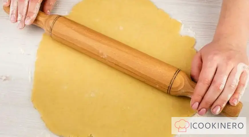 Roll out the dough to a thickness of 3-4 mm and distribute it over the form, forming the sides. Trim off any uneven edges. Using a fork, make many small holes in the dough.
