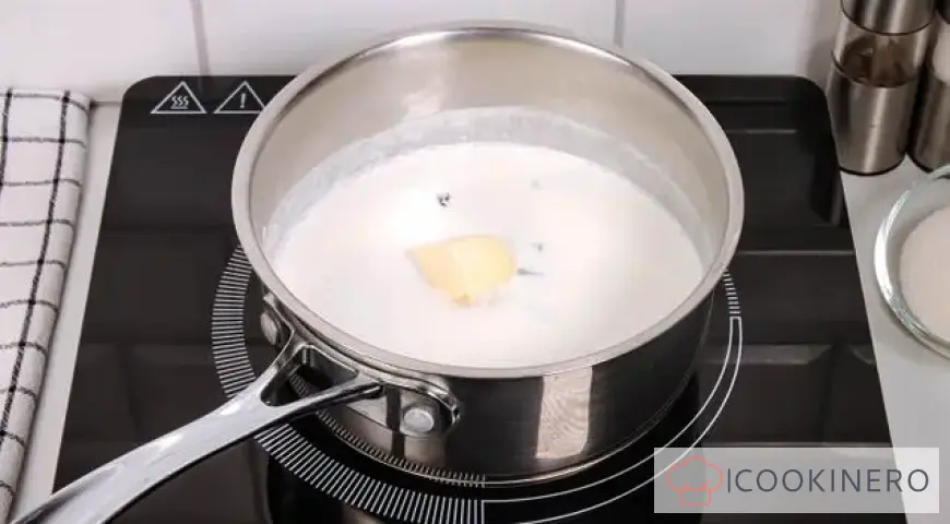 Take a saucepan or a saucepan, pour milk into it and bring it to a boil. Add salt and sugar.