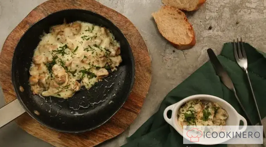 Put the breast slices on the rice and pour over the sauce, serve, decorating with herbs!