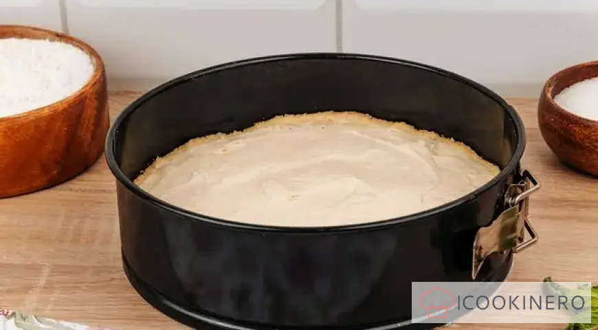 Transfer the pie filling to the prepared base and smooth the filling out.