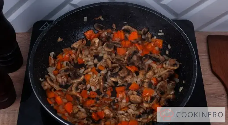 Fry the onions, carrots and mushrooms in a frying pan with vegetable oil.