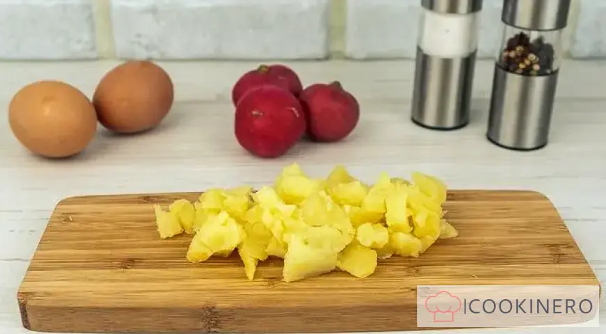 Boil the washed potatoes on the fire for 25-30 minutes. After boiling, let them cool down and then remove the skin.