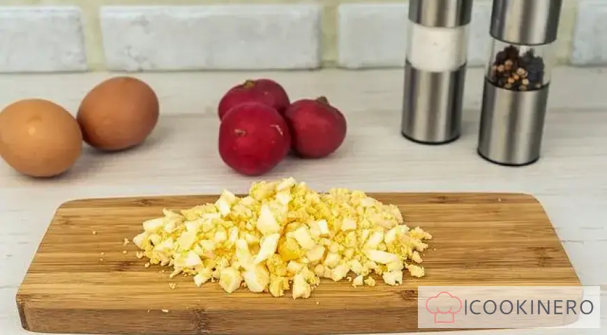 Cut the young radish into small cubes.