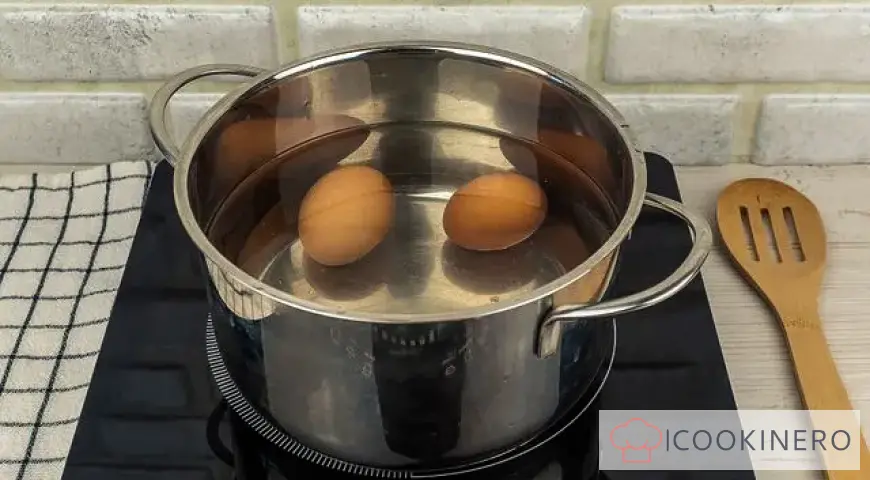 Place the eggs in a small saucepan with water and cook until done. To cool the eggs after cooking, pour cool water over them.