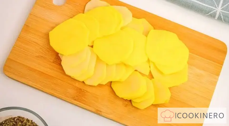 Cut the potatoes into thin slices.