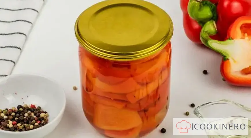 Place the finished bell peppers in sterilized jars. Try to place them tightly. Bring the marinade to a boil again and fill the jars to the brim. Cover the jars with sterilized lids and screw them on. Turn the jars upside down and cover with a blanket or towels. Leave the screws to cool completely for about a day, then put them in a pantry or cellar.