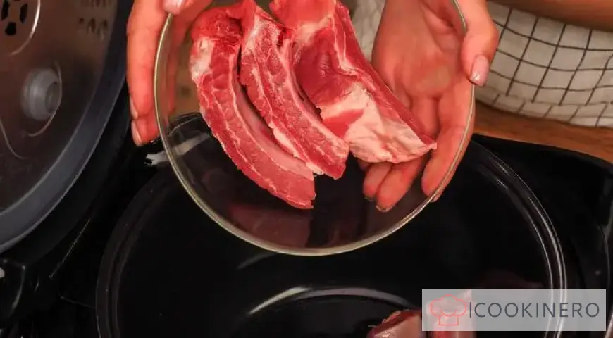 There are two types of pork ribs: in the first, they are cut from the back (loin), in the second - from the breast part of the carcass. There are more veins on the breast part of the ribs, due to which the meat does not dry out during frying, and the bones themselves have a flat, straight shape, which simplifies the preparation of ribs. The meat on the breast ribs is quite tough, so it takes longer to cook. For the recipe for ribs in a multicooker, it is better to take this part of the ribs.
