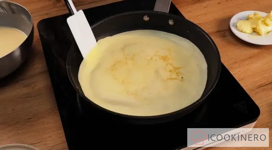 Now you can bake rice pancakes. Heat the frying pan well, add some oil (you can use coconut or flaxseed). Pour about half a ladle of batter into the frying pan. Spread it over the entire surface of the frying pan. Fry each pancake over medium heat for about 2-3 minutes on each side until golden brown. Make sure the pancakes do not burn. The frying time depends on how hot the frying pan is.