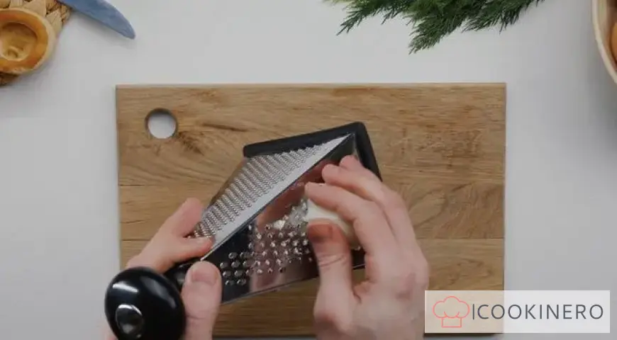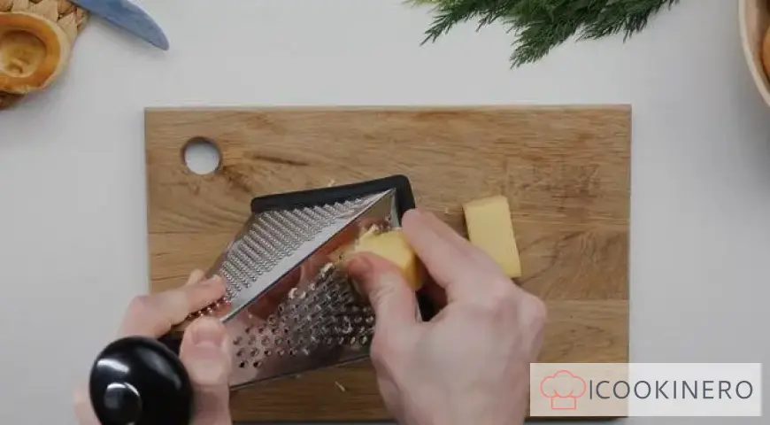 Grate boiled chicken eggs or chop them with an egg slicer.