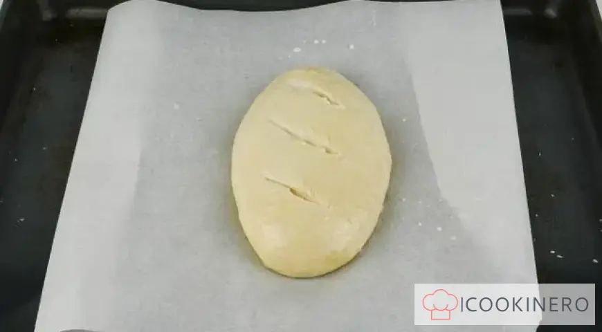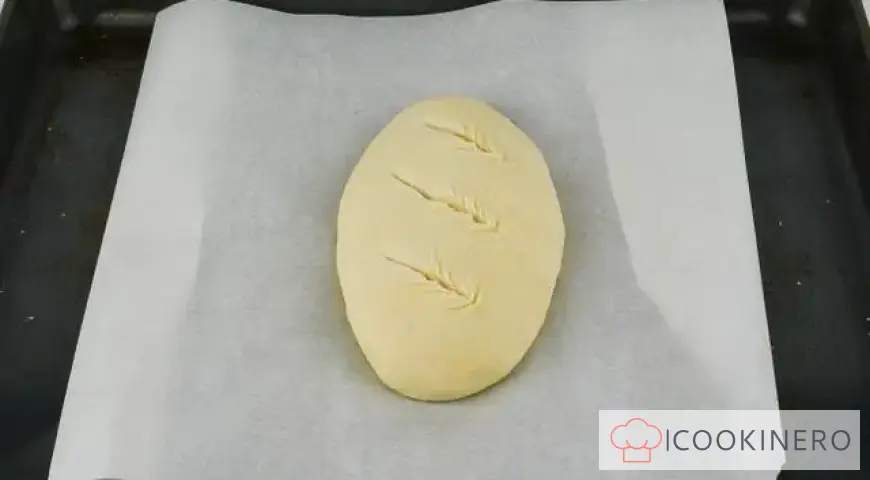Take a baking sheet, place parchment paper on top and place the dough on it.
