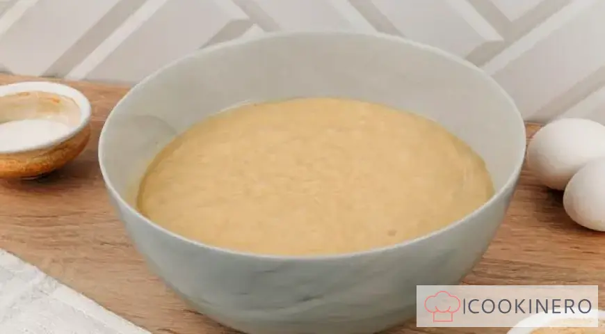 Vierta la mezcla de leche y mantequilla en el recipiente con la masa, luego agregue la mitad restante de la harina. No deben quedar grumos de harina ni de aceite en la masa terminada.