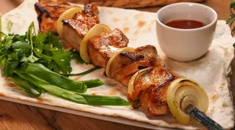 Una nuova e insolita variante dello shashlik conserva il sapore originale del piatto, aggiungendovi note esotiche. Il tenero petto di pollo, immerso in una marinata saporita, si sposa alla perfezione con la consistenza tenera e croccante dell'ana