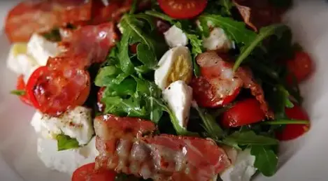 La rucola, o erba senape, è ricca di elementi benefici, contiene molte fibre e, per questo, è molto saziante. Preparando un'insalata con pancetta e rucola secondo la nostra ricetta, vedrete come queste verdure si sposano alla perfezione con la ca